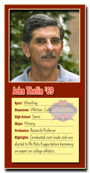 Thelin, who chose Brown over schools in his home state of California, successfully balanced the demands of varsity wrestling, a 20-hour-a-week dining hall job and Brown's academic rigors. Thelin believes his responsibilities to school and sport helped frame his future as a person and in his career.