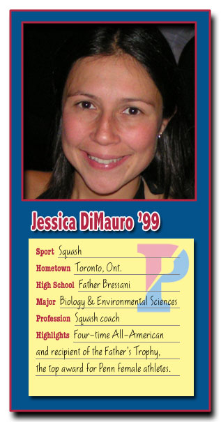 After allowing herself to be convinced, DiMauro started at Penn, promptly won the national singles title freshman year, and reached the finals in each of her next three years. In 1999, she became the first squash player to win the prestigious Father's Trophy -- Penn's top senior award for women -- in nearly three decades.