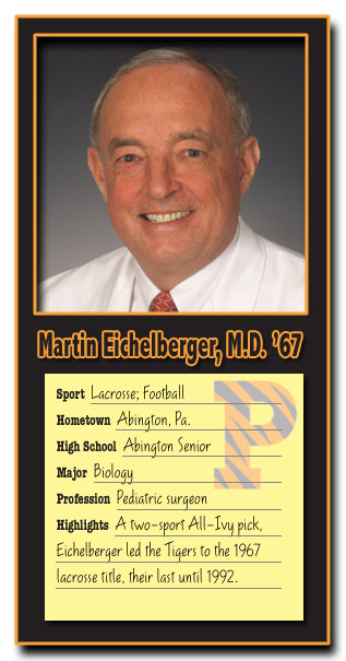 One place where he wasn't catching up was on the athletic fields. In football Eichelberger lettered twice and was a first team All-Ivy pick in 1965. In lacrosse, playing midfielder, he helped Princeton to Ivy titles in two out of his three varsity seasons, earning All-American and All-Ivy first team honors in 1966. As team captain Eichelberger led Princeton to an Ivy title in 1967 -- it would not earn another until 1992.