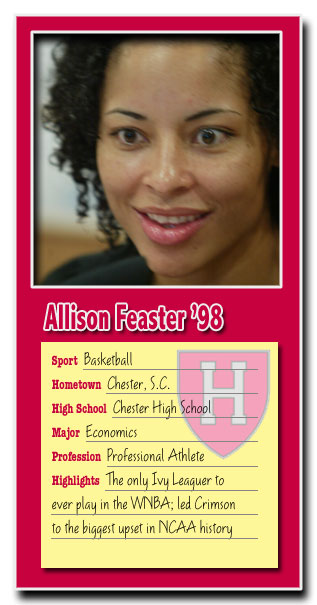"My mother used to say that she would have attended Harvard if she did not have to forgo college due to an unexpected pregnancy. She wanted us to strive for the best in all things... this meant choosing Harvard. Simply stated, I believed Harvard was the best academic institution. Coming from Chester, S.C., Cambridge was an entirely different world. I wanted that experience. Basketball was not a huge factor in my decision. However, I was impressed by Kathy Delaney-Smith and the players that I met on my visit."