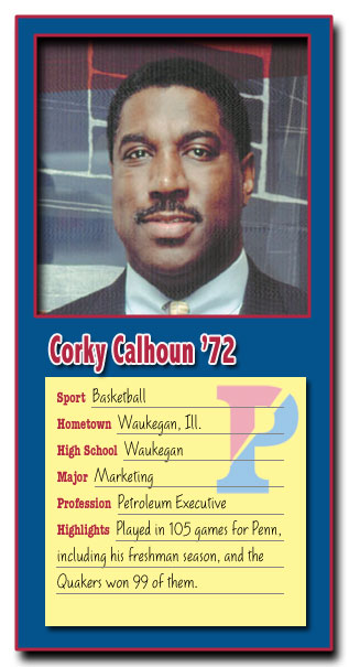 "Corky Calhoun was one of the most versatile college players of his era," says former teammate Craig Littlepage, who later coached Penn and is now the Director of Athletics at the University of Virginia. "At 6-foot-7 and 225 pounds he could play virtually any position, guard any opponent, rebound, handle the ball, and score inside or outside."
