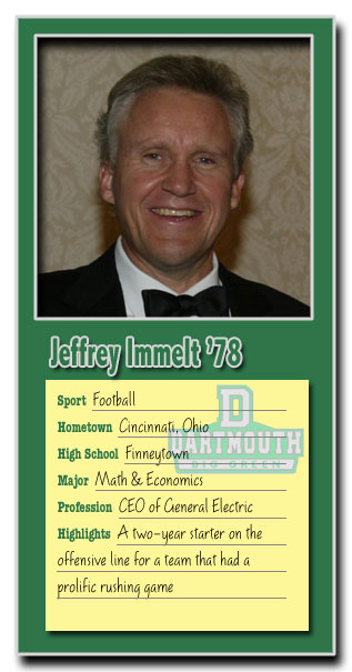 He played in anonymity, like almost every offensive lineman. But Jeffrey Immelt's fellow students at Dartmouth knew that he would find individual success, which he has as the CEO of General Electric.